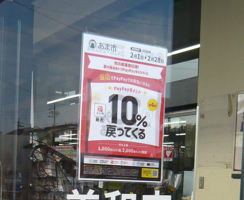 愛知県あま市でPayPayの10%ポイントバックするキャンペーンが開催中です。
