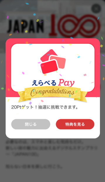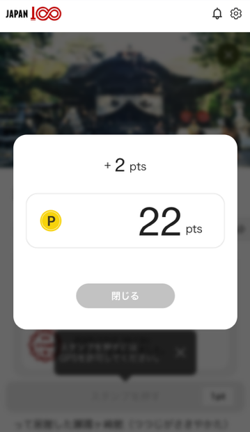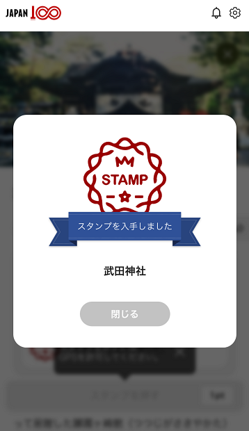 スタンプを獲得しました!(閉じるをタップ)