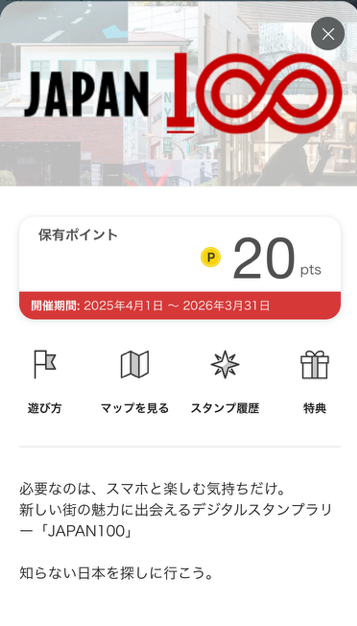 JAPAN100|新しい街の魅力に出会えるデジタルスタンプラリー