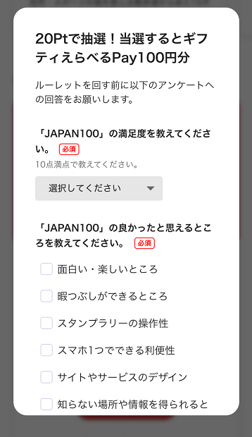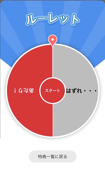 特典を見ると、ルーレットで抽選が出来るようですが、今回はやめておきました(スワイプしてアウト)。