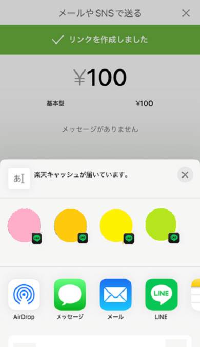 楽天キャッシュ-メールやSNSで送る-リンクを作成しました