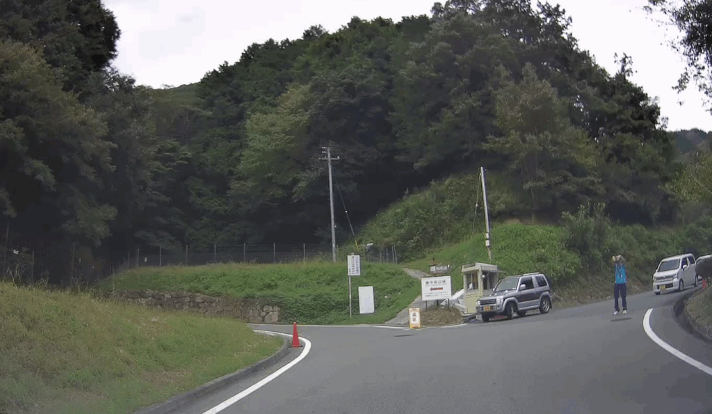 備中松山城へは、国道180号線の川端町交差点が最寄になります。ここから川沿いの道を登ります。途中、運動公園との分岐がありますが、案内板によると左側の細い道が登城経路との事。やがて突き当りを左折して山道へ。途中のY字路の城町ステーションに案内(交通誘導)の方がいますので、案内に従いましょう。お城の駐車場がいっぱいの時は、こちらの道で列を作って駐車場の空き待ちをしたり、いよいよ混むとここの駐車場に止めてシャトルバスに乗ったり歩いたりするようです。順番が来ると(小生、6台くらいを20分くらい待ちました)、交互通行でふいご峠駐車場まで登ります。
