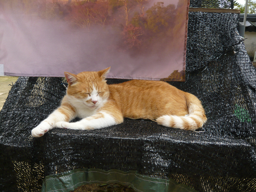 さんじゅーろーは、豪雨災害の際の迷い猫との事。すごい静かな猫で、なでられても逃げません。