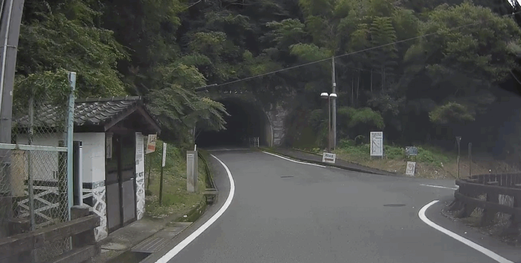Y字を左に進むように案内があります。遠回りですが、ちょっと車幅が広い方や狭い道に自信がない方はここを右に進み、突き当りを左折してトンネルを潜ることをお勧めします。