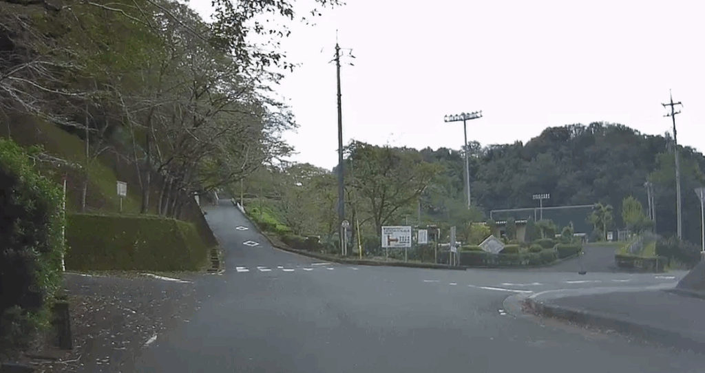 公園の途中ですが、左奥の下り坂へ左折します。