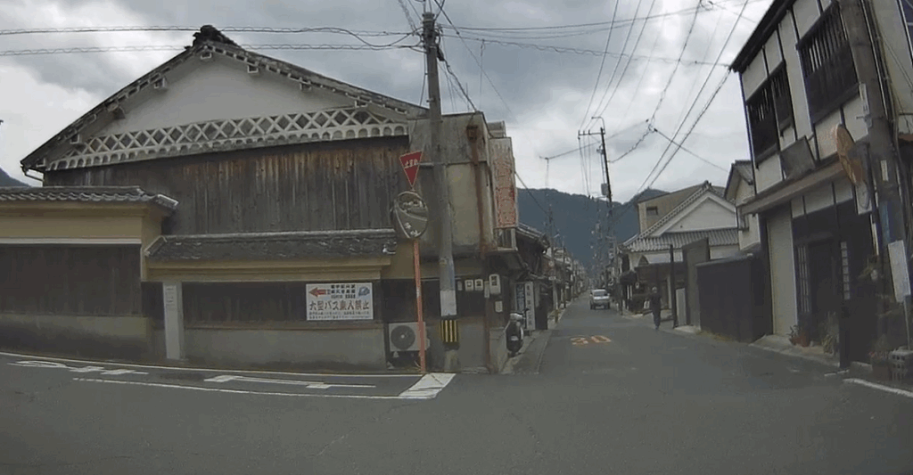 途中途中、道が狭いですが、一方通行ではないので、前から対向車が来ることを意識しながら前へ進みましょう。一応、矢印の案内が出ていますので、推奨された進行方向があります。