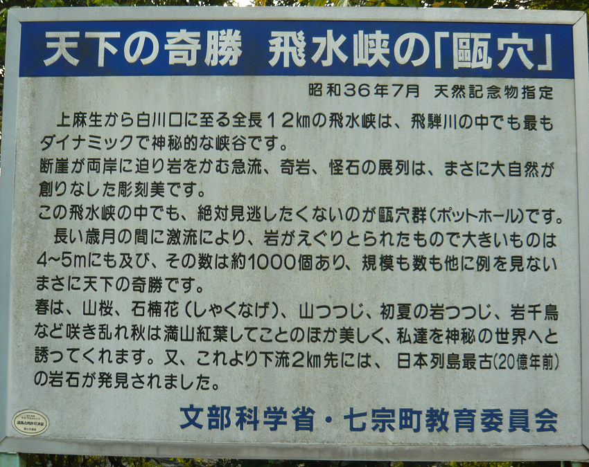 飛水峡の甌穴群[ひすいきょうのおうけつぐん] – 岐阜県公式ホームページ(文化伝承課)