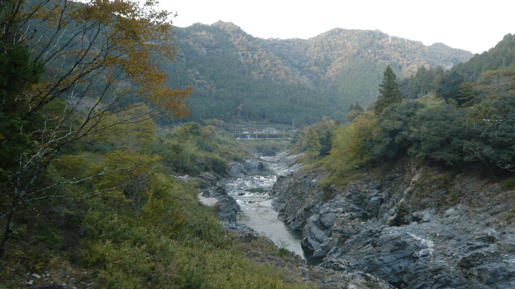 上記の「飛水峡」の案内板があるところの駐車帯からの眺めです。
