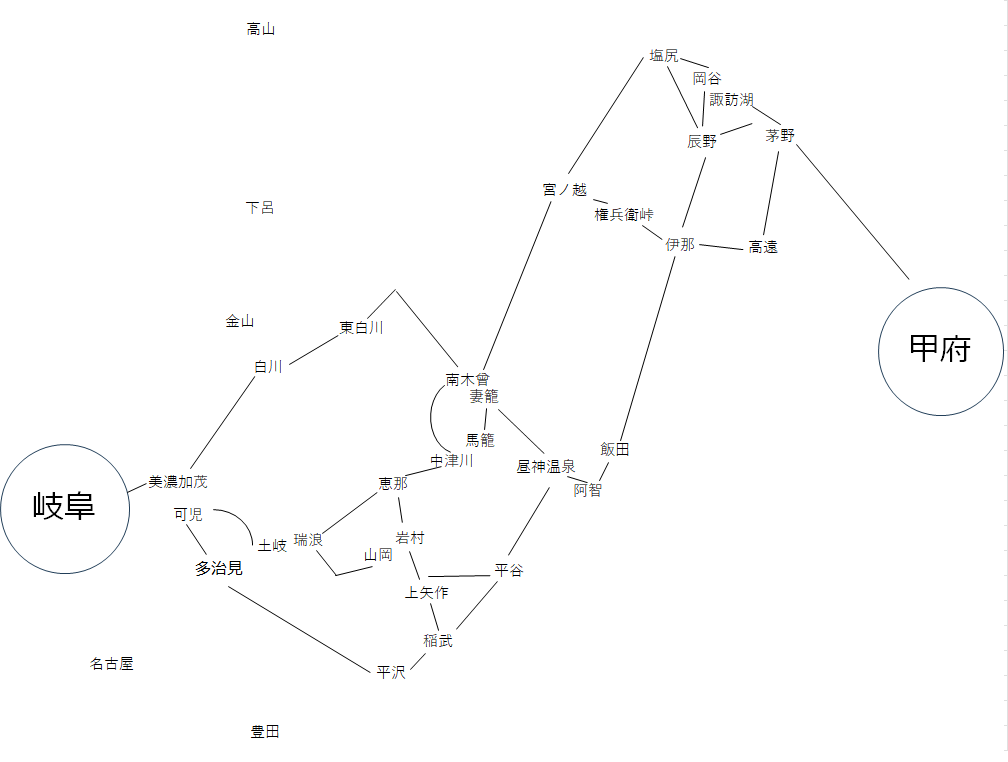 ただ、岐阜から甲府の距離と経過時間ですが、
