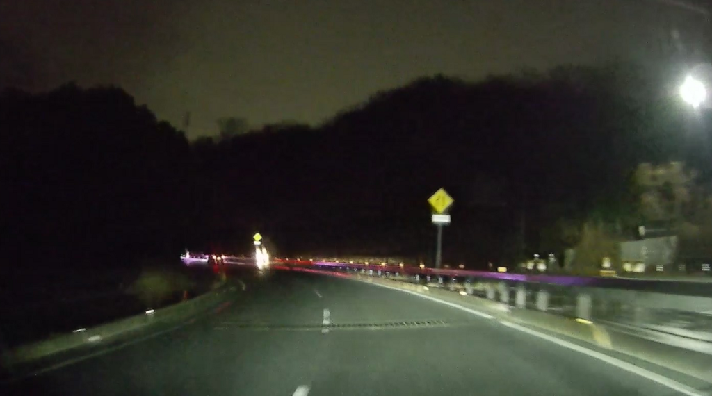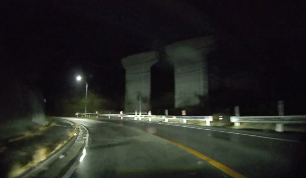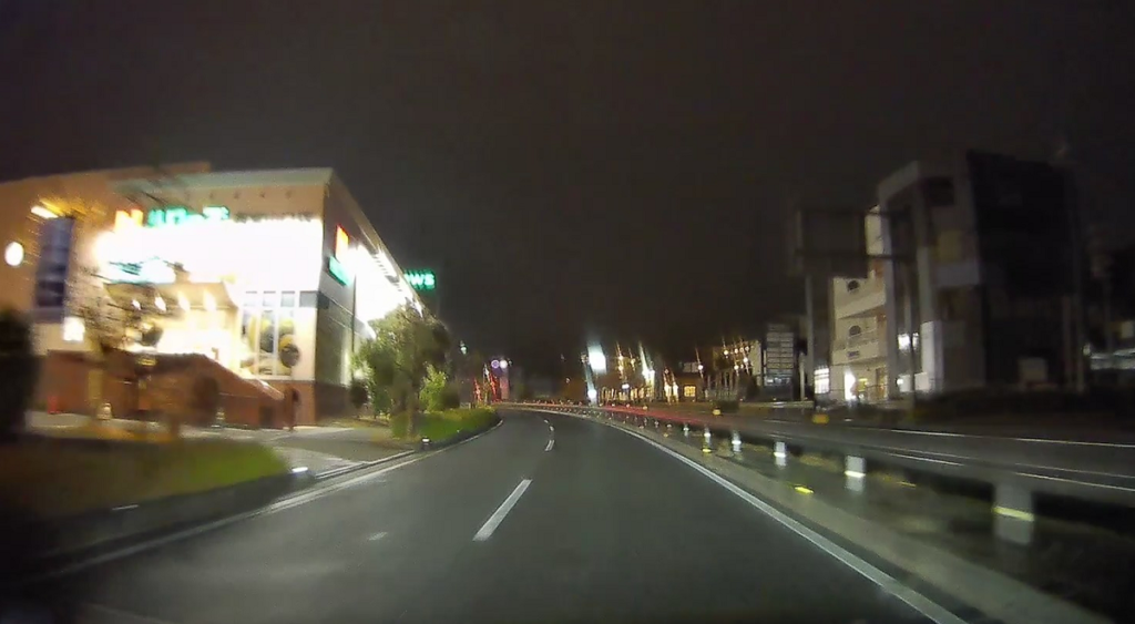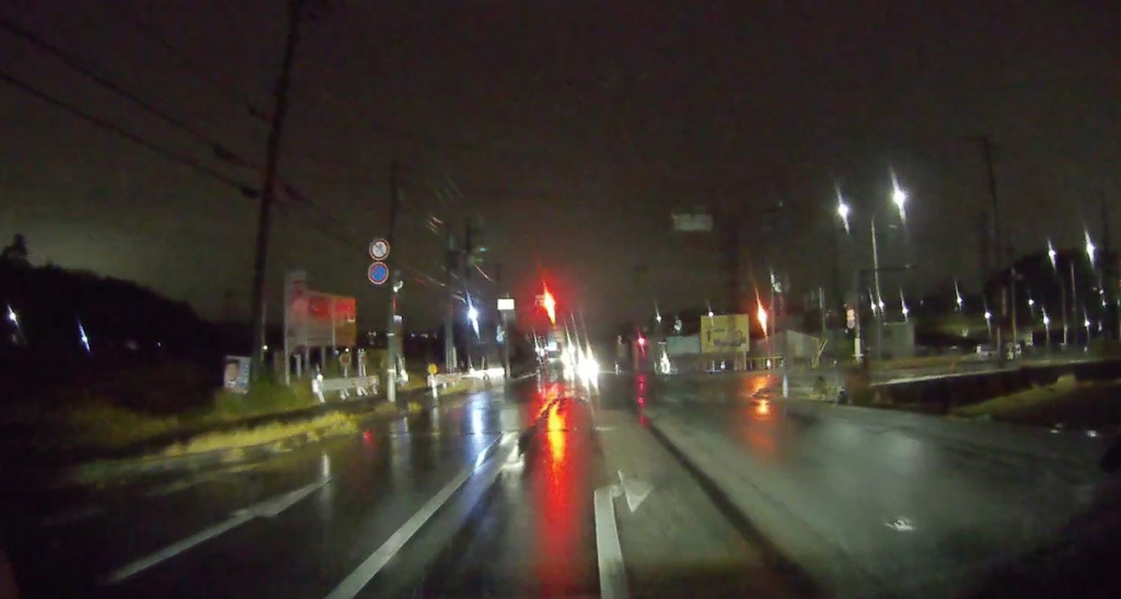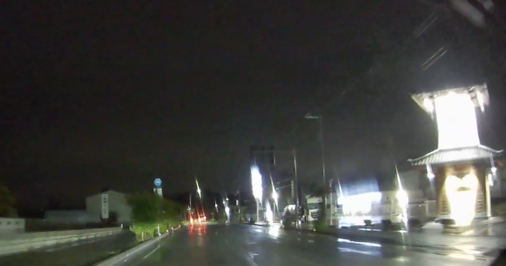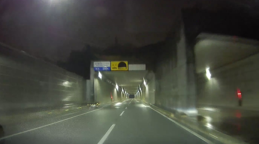 山陽自動車道を潜ります(写真が真っ暗ですみません。夜間はランドマークがほとんどないので高速を潜ったりするのが印象に残ります)。