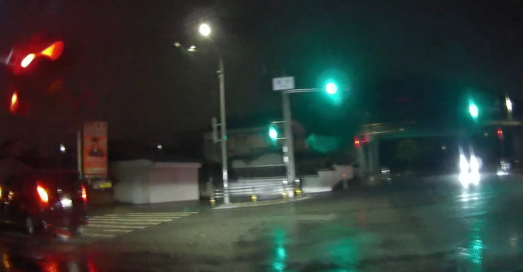 宝塚市内。信号が多いです。水滴が赤く光っているようです。見づらくてすみません。