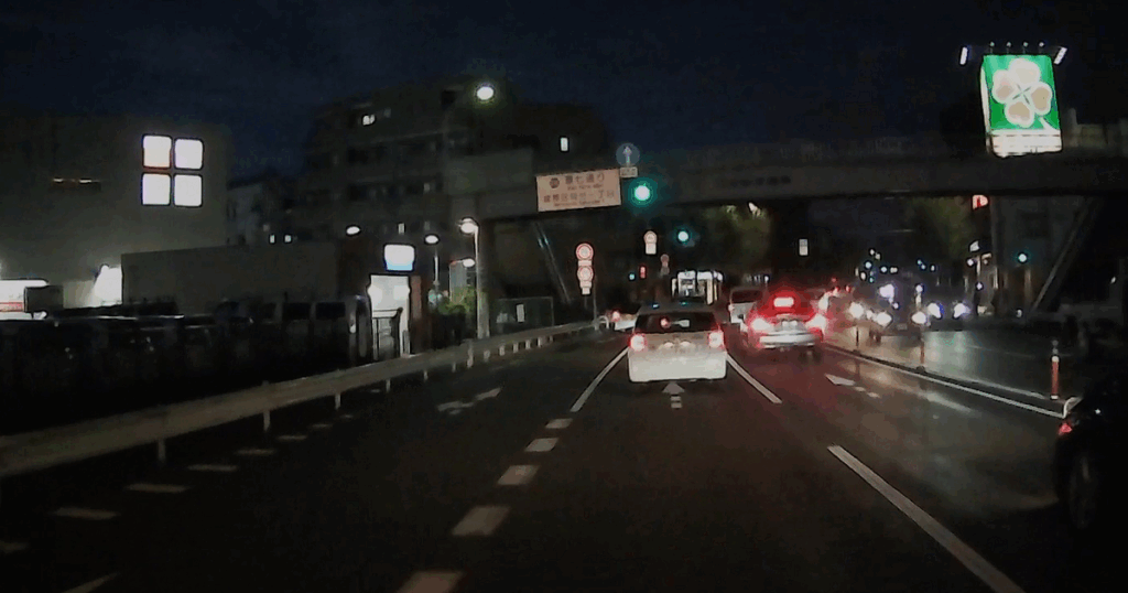 首都高5号線が右から合流し、首都高の下の道に流入します。
