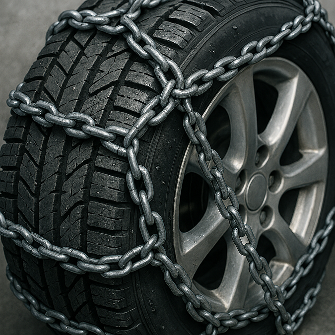 昔の車は、購入時の車載品に金属チェーンがあったりした(小生の知る限りオプション品ではあった)。